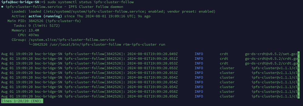 sudo systemctl status ipfs-cluster-follow