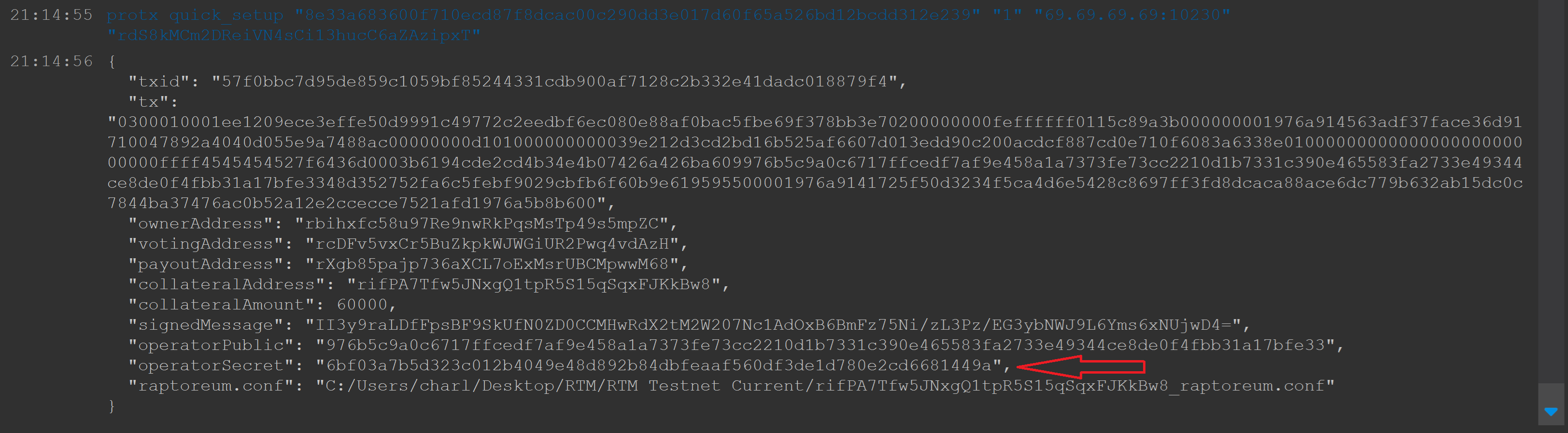 5. Enter the Protx Command Now that we have created the Protx command, we can enter it to obtain the BLS private key.