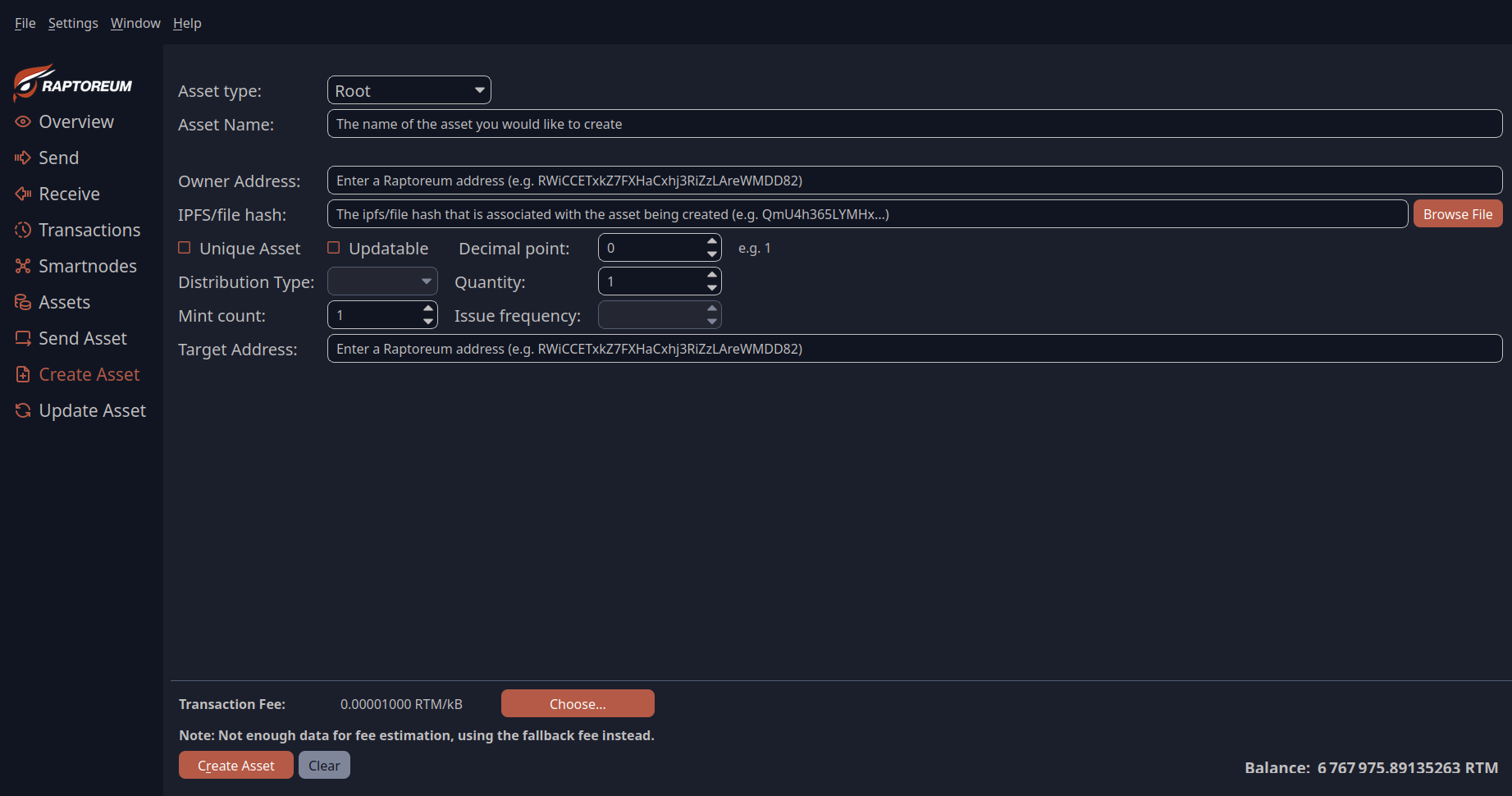 - Quantity: The number of asset quantities to be created