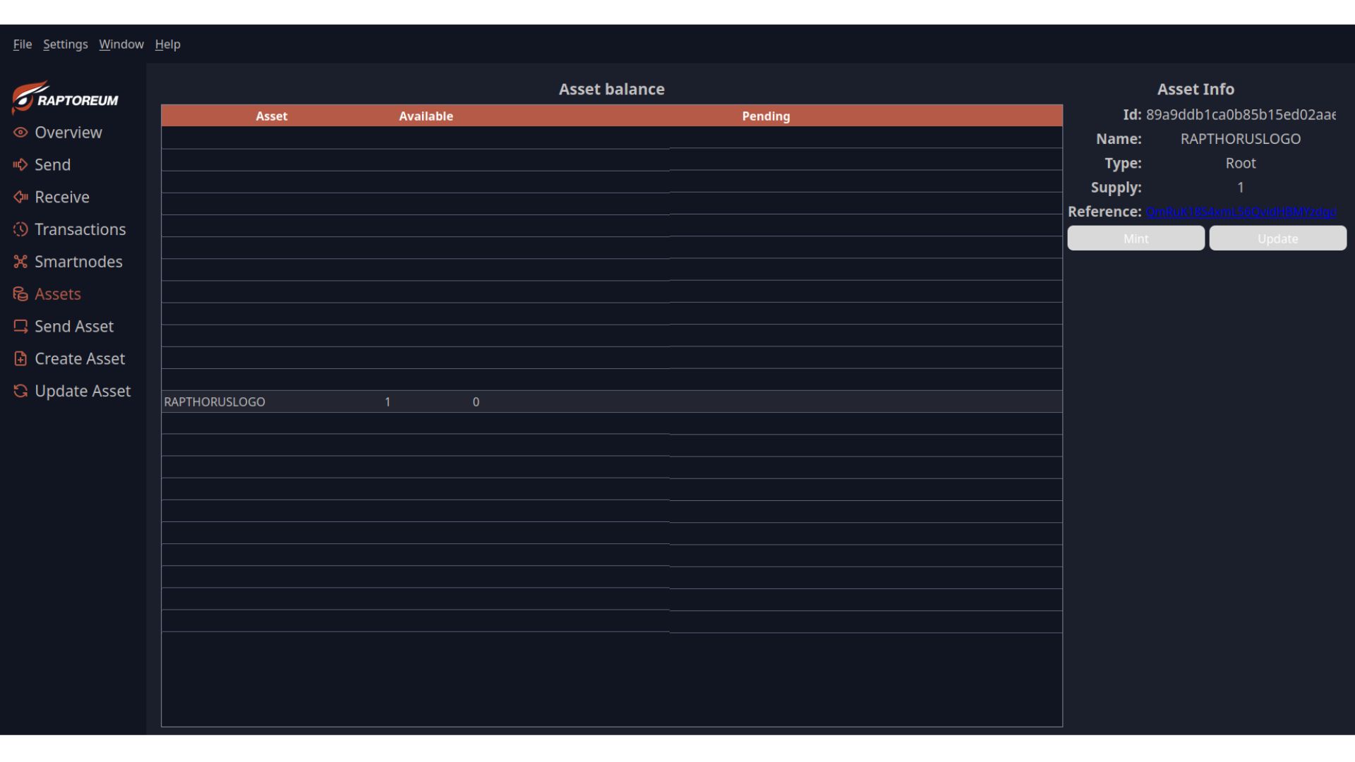 Assets menu: Here you can see the assets assigned to your wallet.